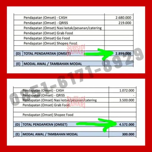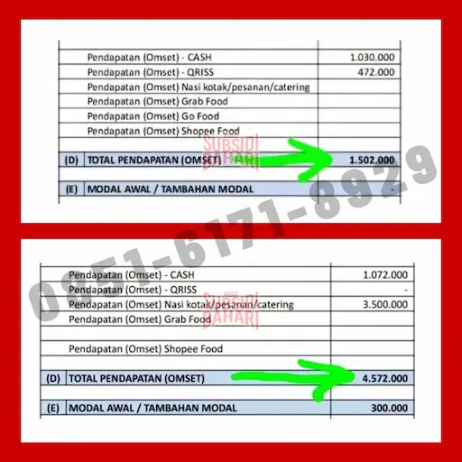 Warteg Subsidi Bahari tidak mengambil sepeserpun dari penghasilan outlet mitra! Seluruh keuntungan yang mitra dapatkan akan sepenuhnya menjadi hak milik mitra.